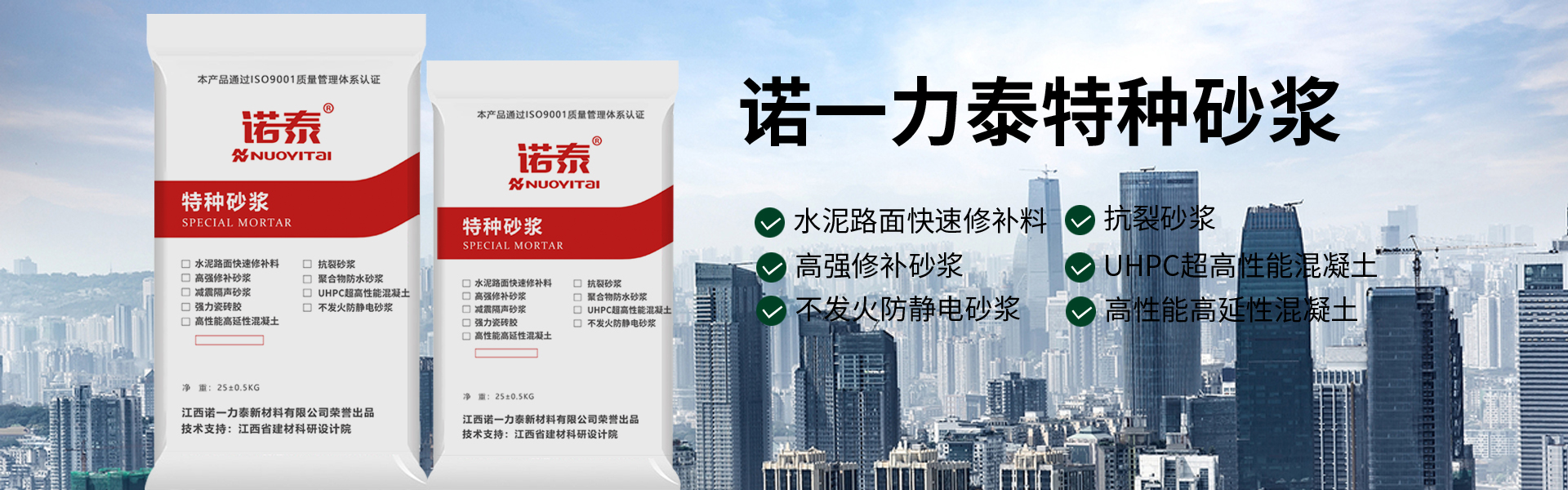 江西諾一力泰新材料有限公司位于江西宜春奉新縣,是專業從事灌漿料水泥路面修補砂漿抗裂砂漿、防水砂漿保溫砂漿隔聲砂漿、粘結砂漿等砂漿系列產品生產銷售的廠家。